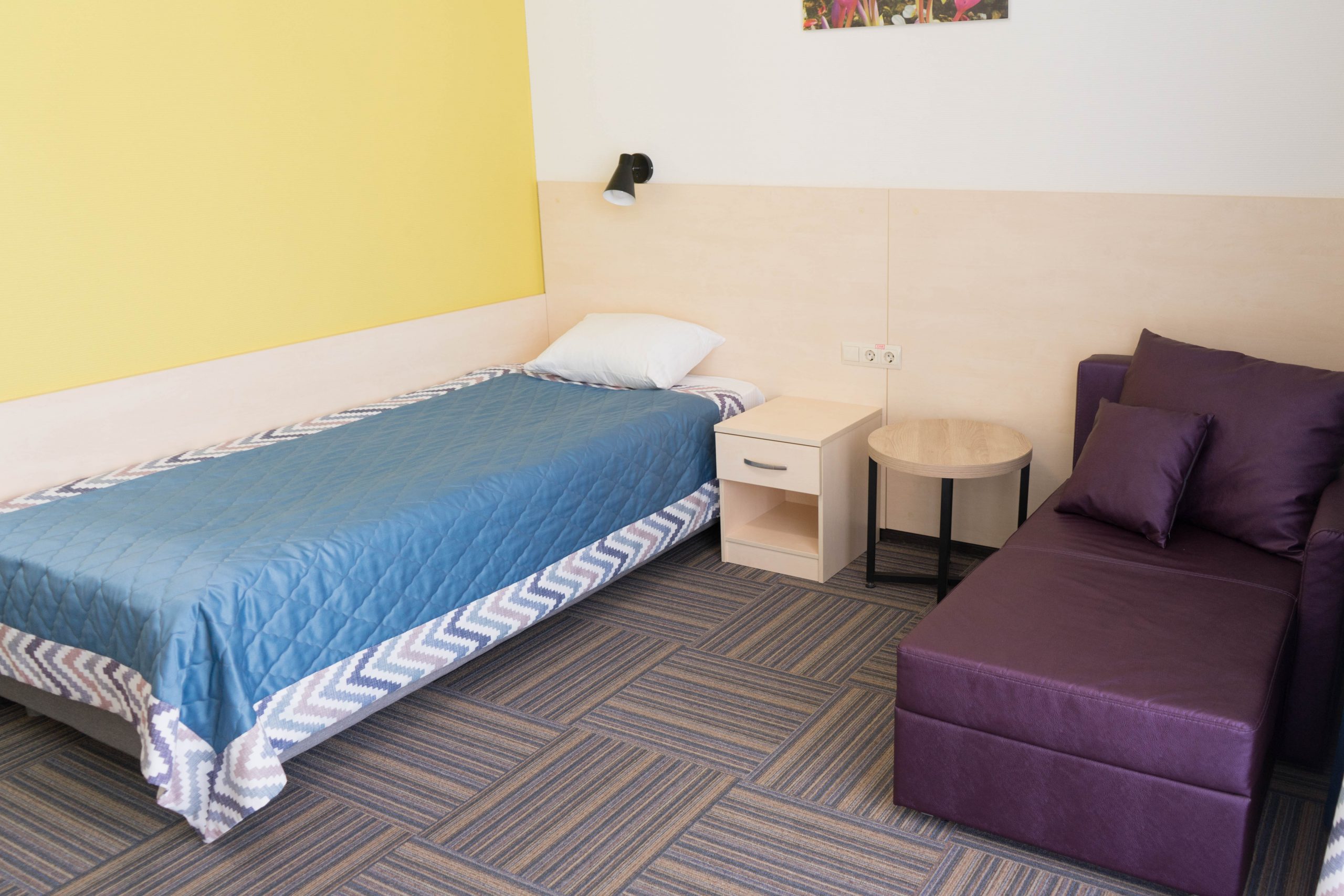 Одно местный однокомнатный номер «1 категории» типа SNCL оборудован односпальной кроватью, прикроватная тумбочка. В номере имеется стол с фригобаром (тумбочка под холодильник), холодильник (мини), телевизор. Номер освещается верхним светом и настенными светильниками. Зеркало. При входе в номер настенная вешалка,для верхней одежды, платяной шкаф, тумбочка под чемодан.В номере отдельная ванная комната. Которая оборудована раковиной, для мытья рук, душевая кабина, унитаз, электро фен. В номере комплект полотенец (3 шт), одноразовая гигиеническая продукция, одноразовые тапочки, швейный набор. Ключ от номера электронный. Ковровое покрытие. Шторы блекаут. WI-FI.