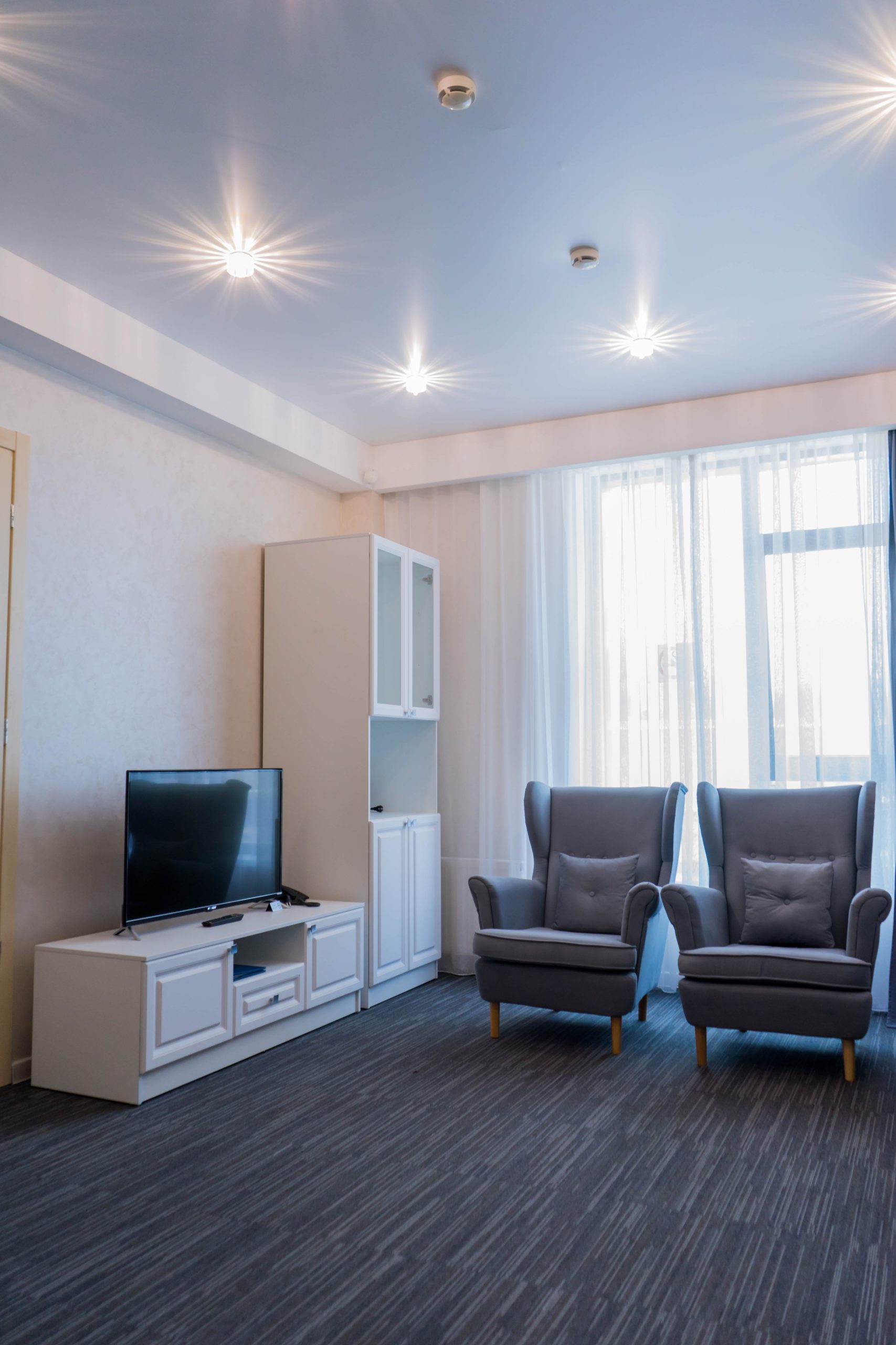 Номера четырех местные двух комнатные «1категории» включают 2 спальных комнаты. Комната имеет 4-х отдельные односпальные кровати с прикроватными тумбочками, платяной шкаф, фригобар с тумбой под холодильник, телевизор. В прихожей номера панель вешалка, для верхней одежды, тумба под чемодан. В номере отдельная ванная комната оборудована раковиной для рук, душевой кабиной, унитаз, электро фен. На каждого гостя комплект полотенец, одноразовые тапочки, одноразовая гигиеническая продукция. Ключи от номера электронные. Ковровое покрытие. Шторы блекаут. WI-FI