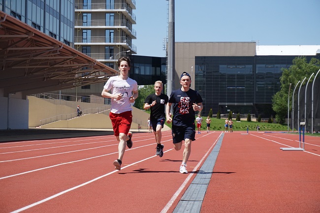 Игровое поле: размер 102х68 м с искусственным покрытием и подогревом, искусственное освещение, зрительские трибуны вместимостью до 200 человек, спортивный инвентарь для занятий по регби, футболу и мини-футболу.