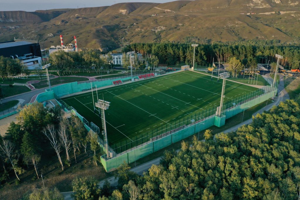 Поле для регби с искусственным покрытием, подогревом и системой освещения размером 114*73 м, отлично подходит для круглогодичного использования. Подогрев поля делает его функциональным даже во время зимнего периода года, а яркое освещение делает его доступны для тренировок в темное время суток, что особенно актуально при коротких зимних световых днях.