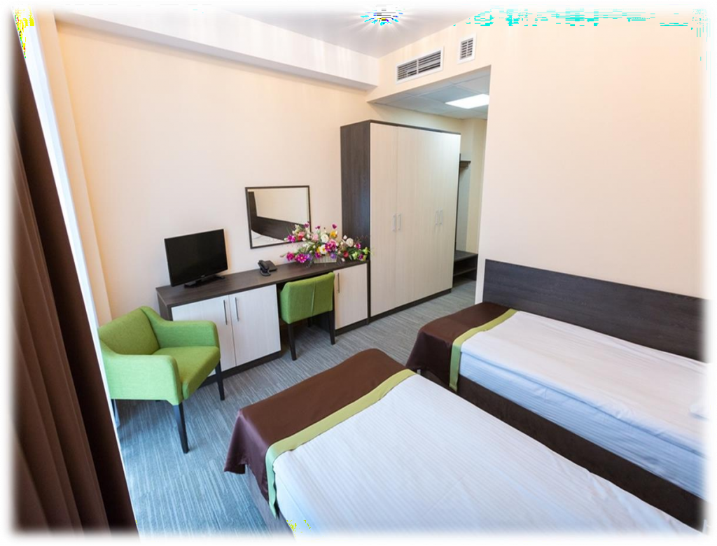 В каждом номере имеется мебель, необходимая для комфортного отдыха, телевизор, доступ в интернет — Wi-Fi, холодильник, санузел, оснащённый душевой кабиной, ванные принадлежности, фен, сушка для белья, общая система кондиционирования.